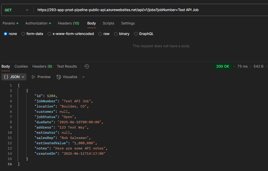 The API Version is also required in the LBM Public API URL path for each request. Currently, the only version is “1”, so a request to the jobs endpoint would have it set as v1: https://293-app-prod-pipeline-public-api.azurewebsites.net/api/v1/jobs