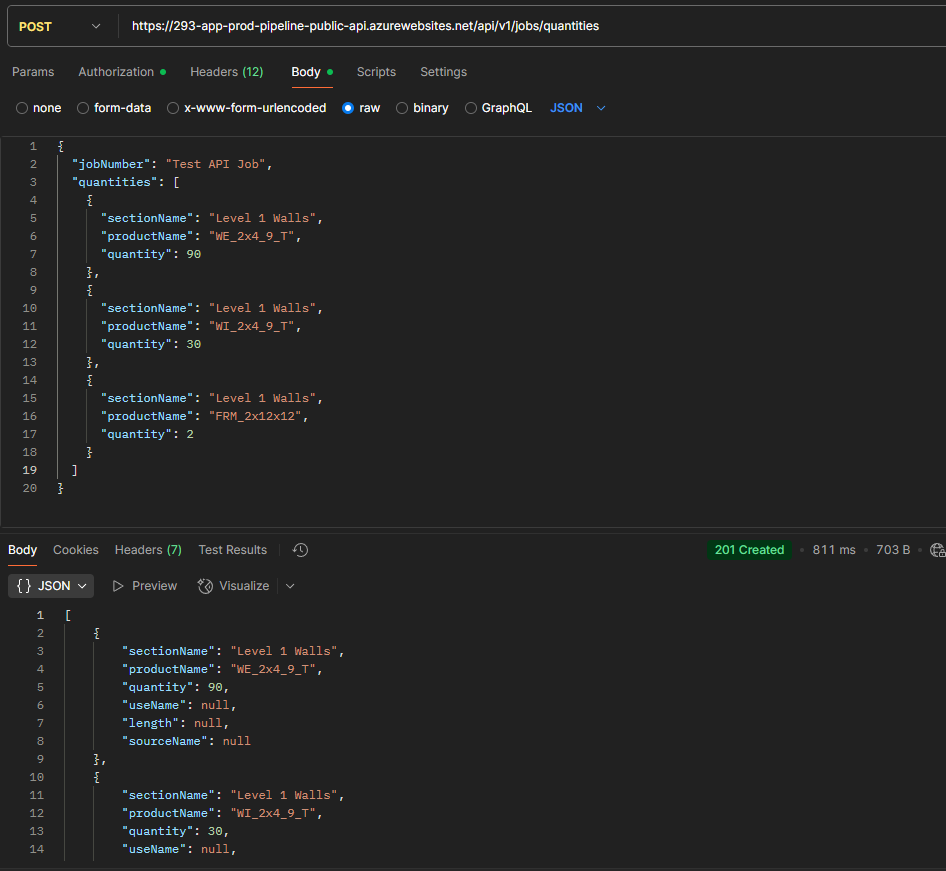- The Job Quantities endpoint allows adding Products and Key Measures to a Job’s quantities.