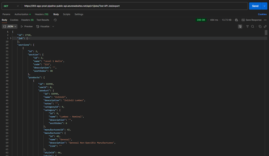 Then, call the Job Export endpoint to get the generated BOM, represented as JSON: